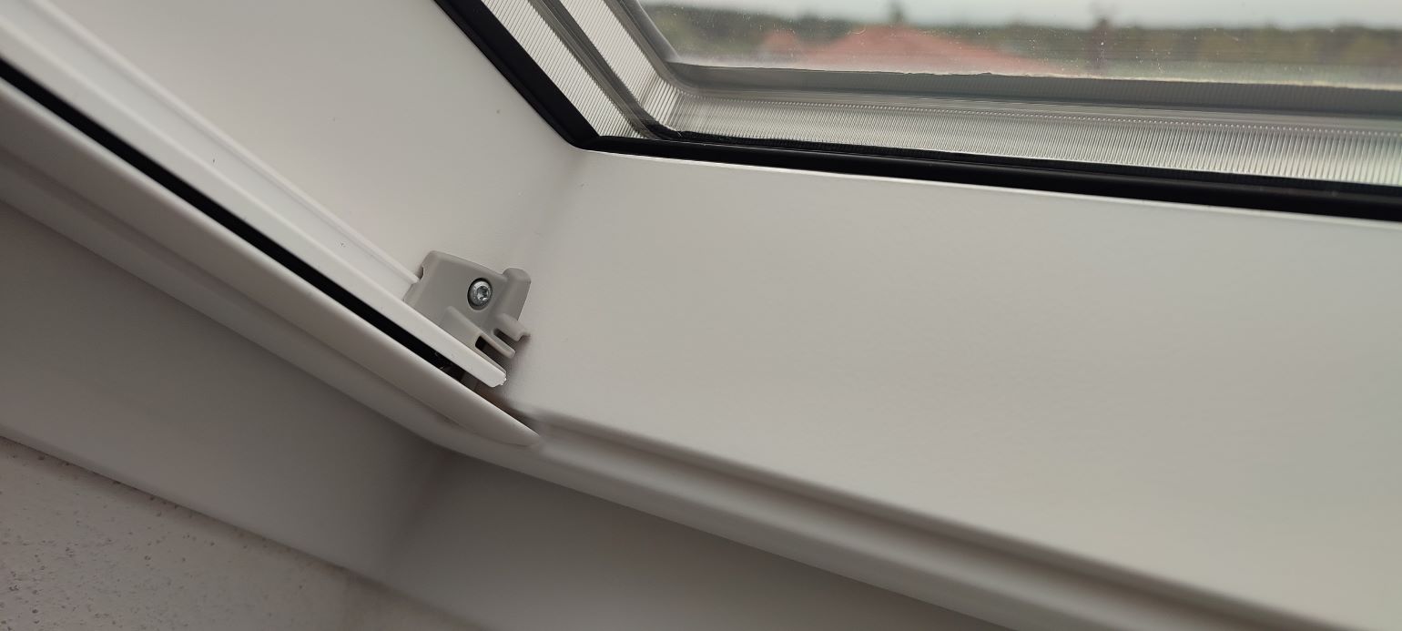 - Koncovky se přišroubují na strany ve spodní části okna Velux